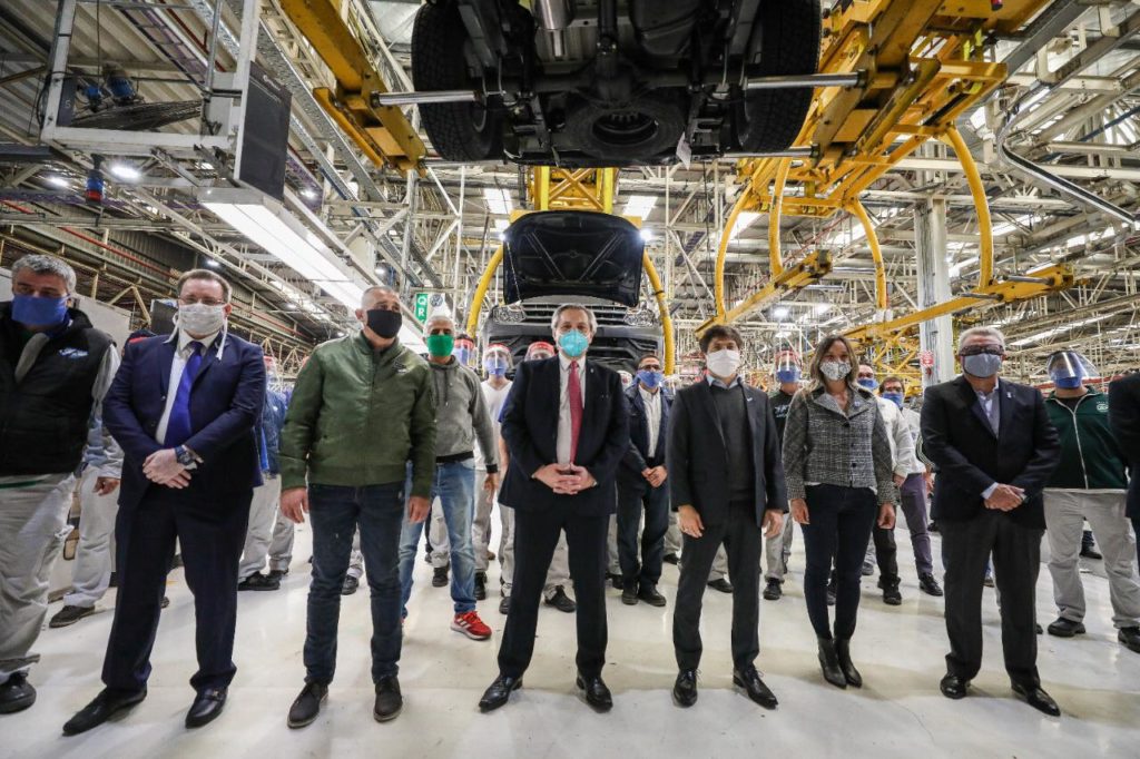 El presidente Alberto Fernández encabezó esta mañana en el municipio bonaerense de Tigre una recorrida por la planta de producción automotriz de Volkswagen, que retomó sus tareas esta semana bajo estrictos protocolos sanitarios para la prevención del coronavirus COVID-19. Estuvo acompañado por el gobernador de la provincia de Buenos Aires, Axel Kicillof.