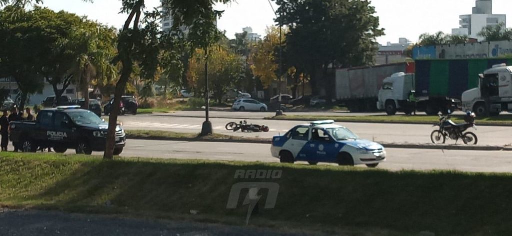 El conductor de un camión lo encerró en el carril derecho de Avenida Alem, a la altura de calle Alberdi, perdió el control del birrodado y derrapó, quedando inconsciente al golpear contra la cinta asfáltica.