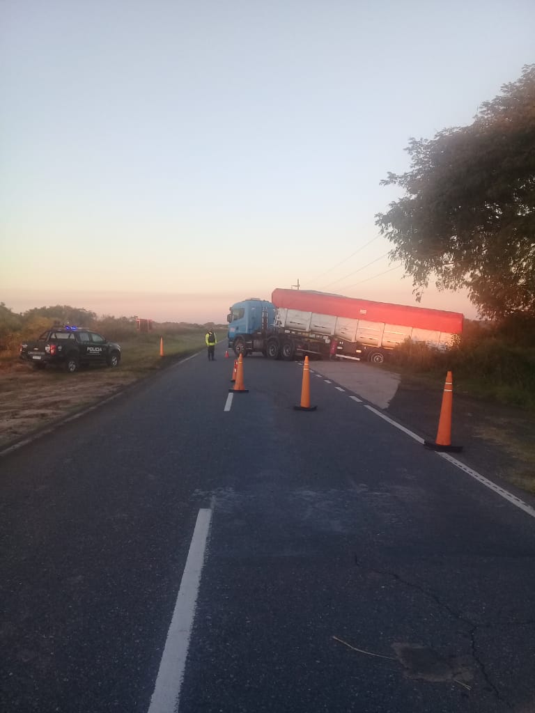 Inmediatamente llegaron al lugar efectivos de la Policía Vial, con asiento en San Javier y de la Comisaria de Saladero Cabal. También algunos productores con tractores, pero fue imposible moverlo.