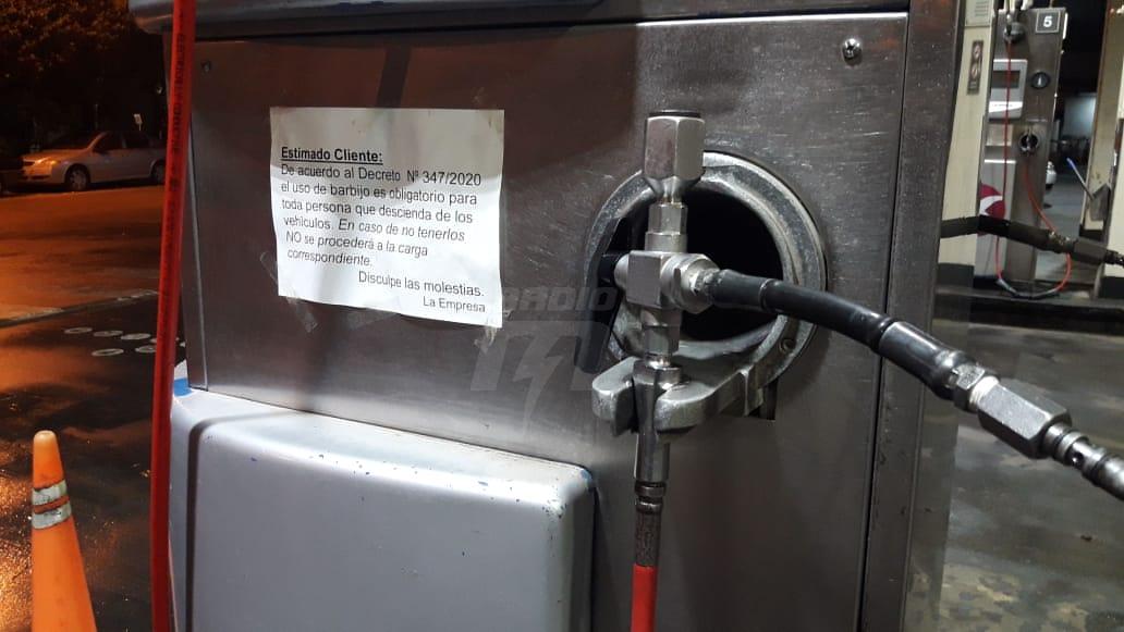 Cabe destacar que en los surtidores se encuentra colocado un mensaje para los clientes con el decreto que obliga al uso del barbijo para la carga de combustible en los vehículos.