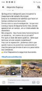 “Seguimos trabajando para recuperar la maquinaria del Estado Municipal. Esta es la moledora de ladrillos que hace un tiempo estábamos buscando.