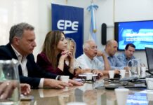 Finalmente, a las 18, gran cantidad de vecinos se reunieron en calle 14 y San Martín con una gran bandera argentina para realizar un abrazo simbólico a la empresa. También numerosos autos que pasaban por el lugar hicieron sonar sus bocinas para adherir a la protesta.