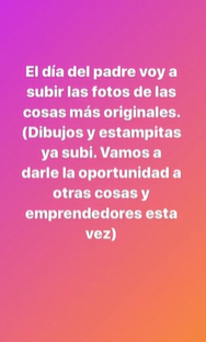 Y siguió: “El día del padre voy a subir las fotos de las cosas más originales. Dibujos y estampitas ya subí, vamos a darle una oportunidad a otras cosas y a emprendedores esta vez.