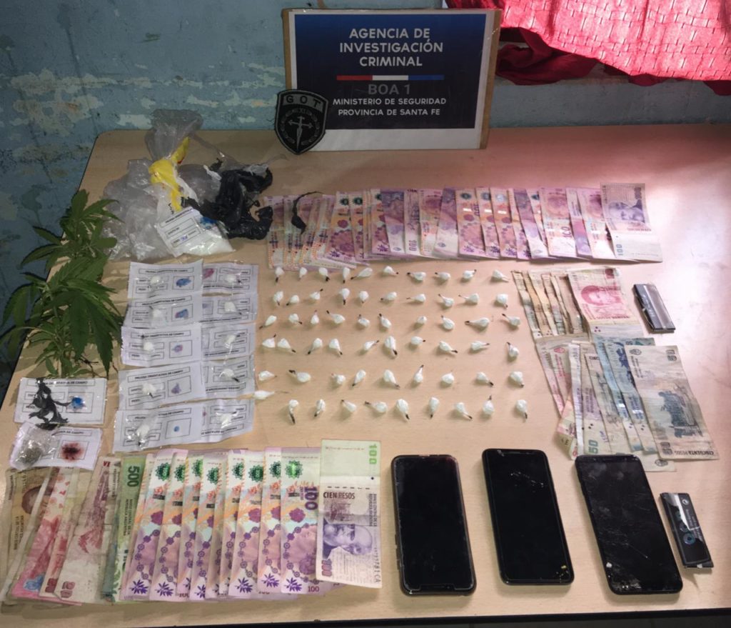 Y en la última de las moradas allanadas, los investigadores secuestraron cocaína, 10 plantas de marihuana, 3 celulares y casi $5000, y diversos elementos empleados en el fraccionamiento de drogas, logrando asimismo la detención de A. M. B. de 26 años, el que era una de los principales investigados, y quedo incomunicado.