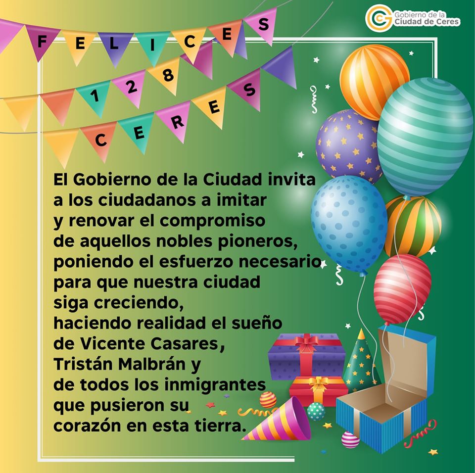 Hoy 1 ° de Julio la Ciudad de Ceres celebra la fecha de su fundación, en honor a la Diosa de la Agricultura, los fundadores Tristán Malbran y Vicente Casares pusieron la piedra fundacional de nuestra ciudad.