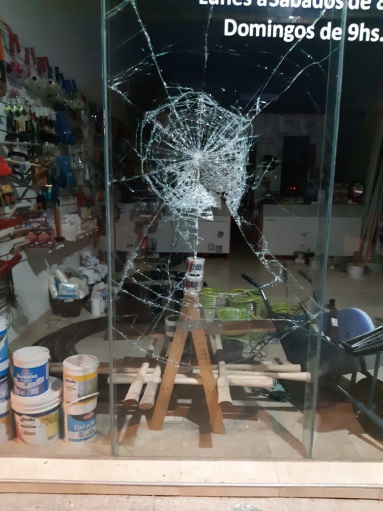 En las inmediaciones de la Ruta Provincial 1, a la altura del kilómetro 1.7, una ferretería fue foco de la inseguridad y el vandalismo. Delincuentes rompieron una de sus vidrieras con una piedra, y sustrajeron algunas herramientas.