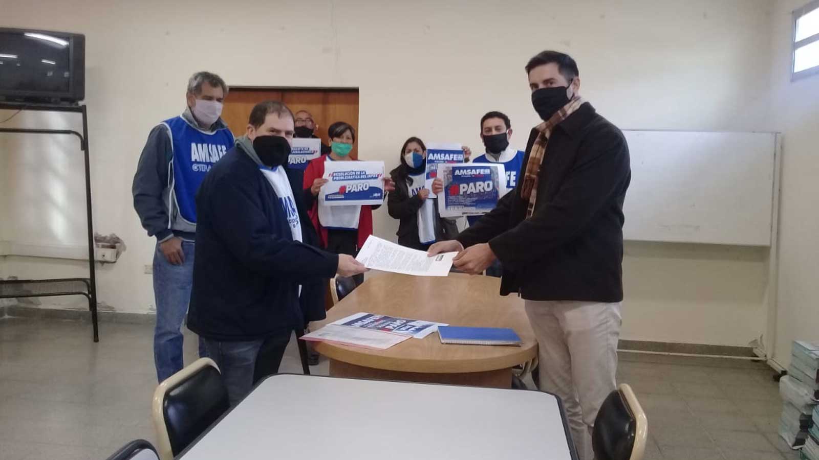 Este miércoles a la mañana referentes y miembros de Amsafe 9 de Julio entregaron a autoridades locales un petitorio con los diferentes reclamos que vienen sosteniendo ante el gobierno provincial. El documento tiene como objetivo interiorizarlos acerca de la situación y pedirles que intercedan para obtener respuestas.