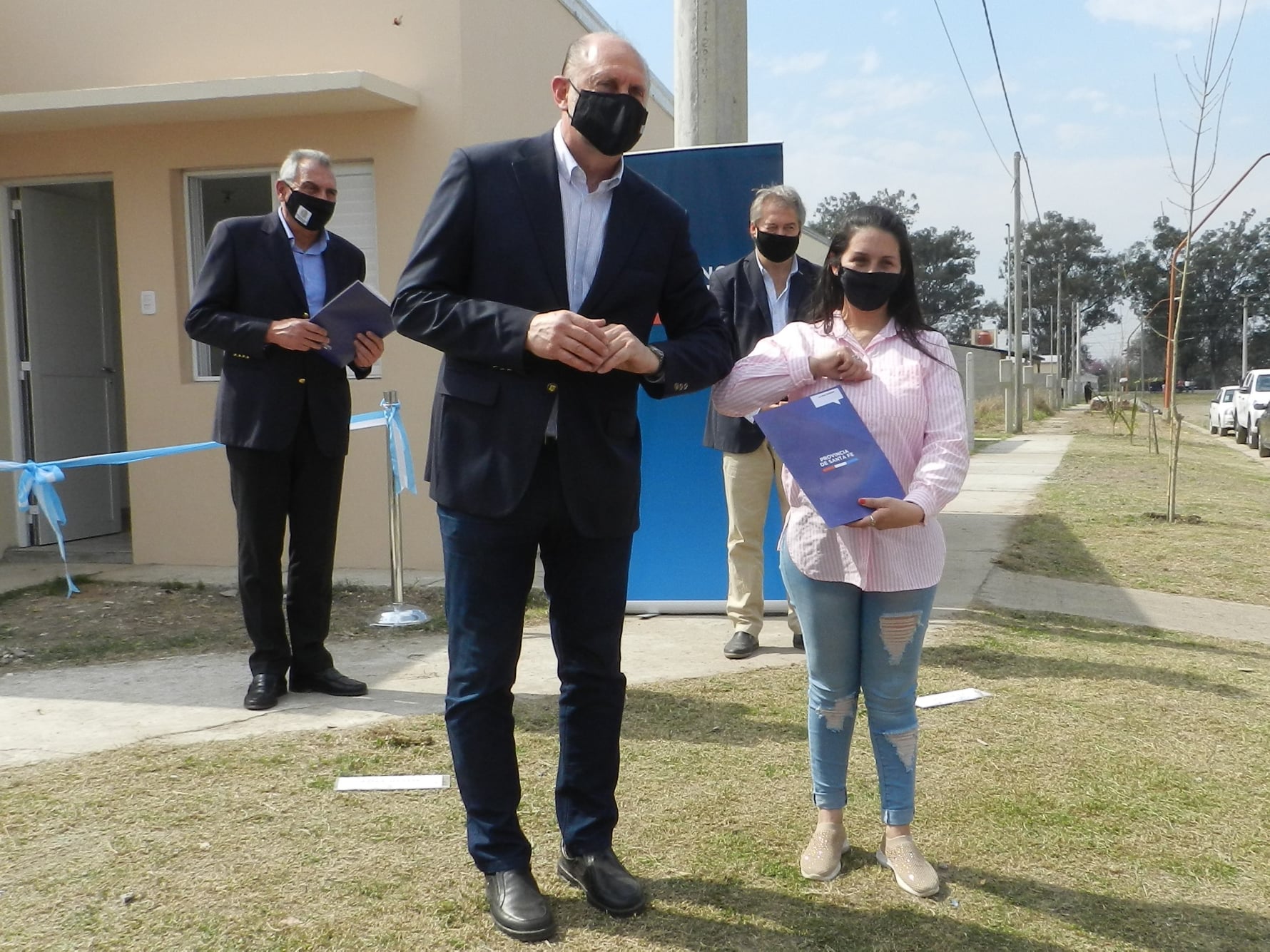 El gobernador Omar Perotti, y la ministra de Infraestructura, Servicios Públicos y Hábitat, Silvina Frana, el senador José Baucero y el intendente Mario Migno, entregaron 40 viviendas, construidas en el loteo Mi Tierra Mi Casa, con una inversión que supera los 154 millones de pesos.
