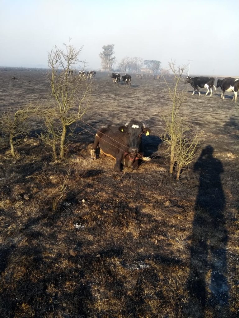 En tanto, unas mil hectáreas fueron afectadas por el fuego, que arrasó con todo, incluyendo animales y una camioneta de Bomberos Voluntarios.