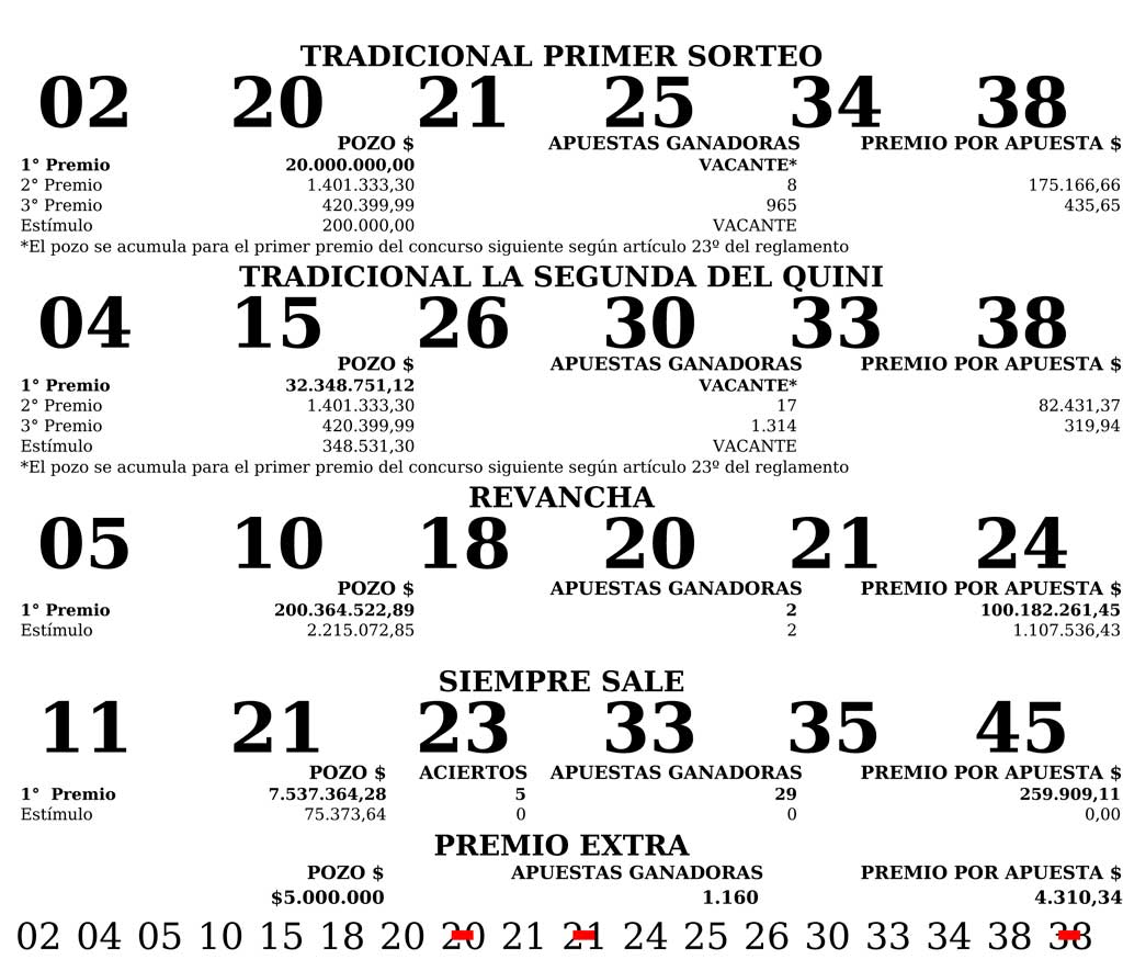 Este domingo por la noche se desarrolló el concurso n° 2784 de Quini 6 y hubo dos ganadores con seis aciertos. Los apostadores se quedaron con la categoría «Revancha» y cada uno se lleva la suma de $ 100.182.261,45.