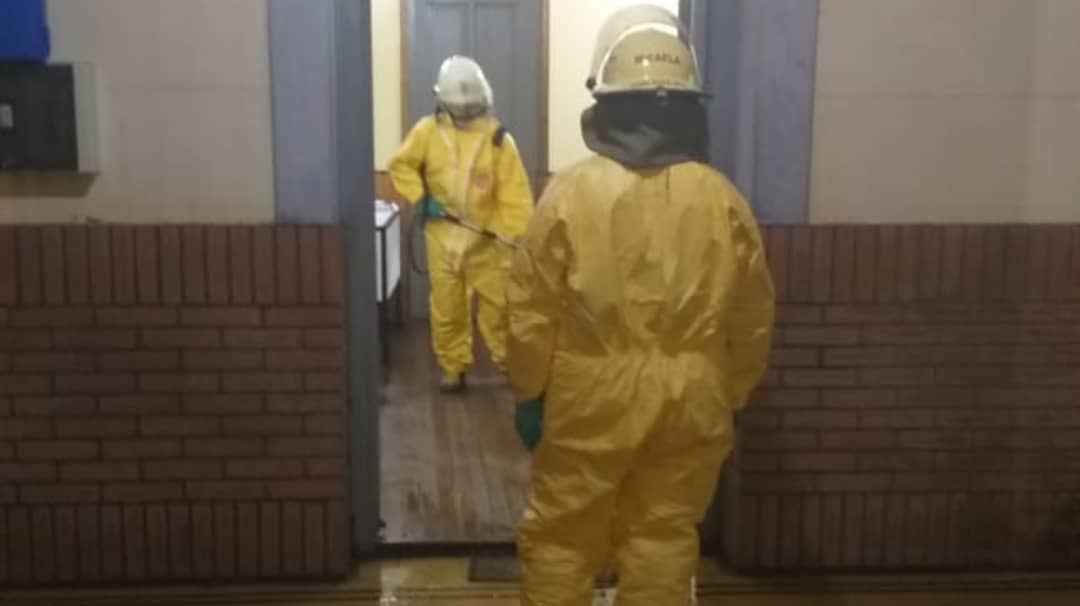 Bomberos Voluntarios de esta ciudad, procedieron preventivamente a la desinfección y sanitización del edificio de Jefatura.