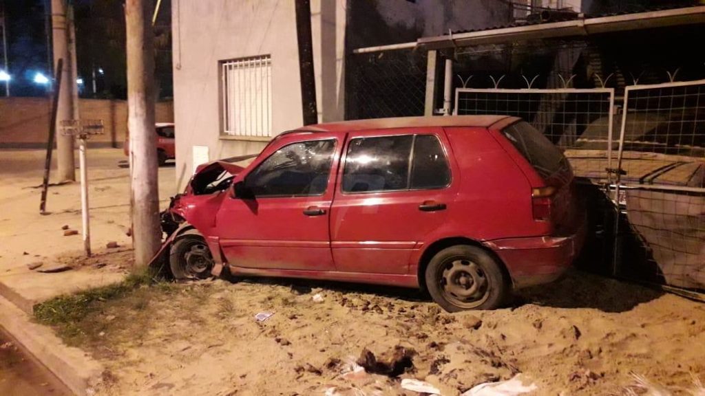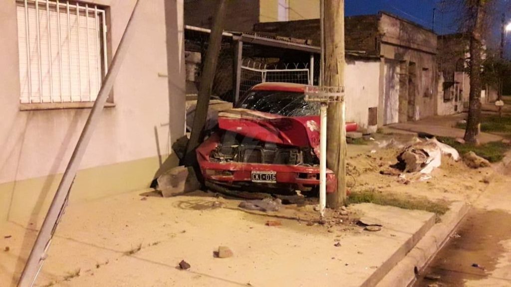 Según el móvil de Radio EME, un vehículo impactó contra una vivienda ubicada en Lamadrid al 3100, tras perder el control y quedó incrustado entre dos postes.