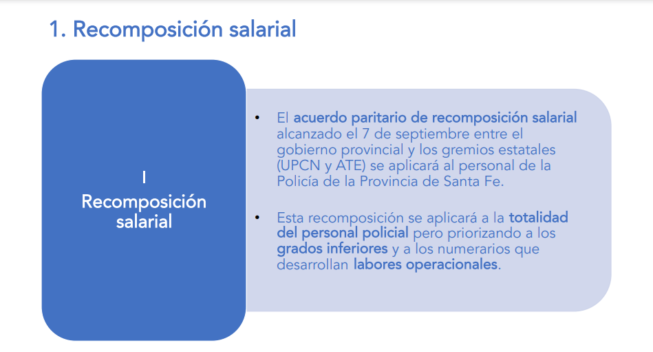 El gobierno de Santa Fe aplicará al personal de la policía provincial el mismo programa de recomposición salarial que ofreció en paritarias a los trabajadores del Estado nucleados en los gremios ATE y Upcn.