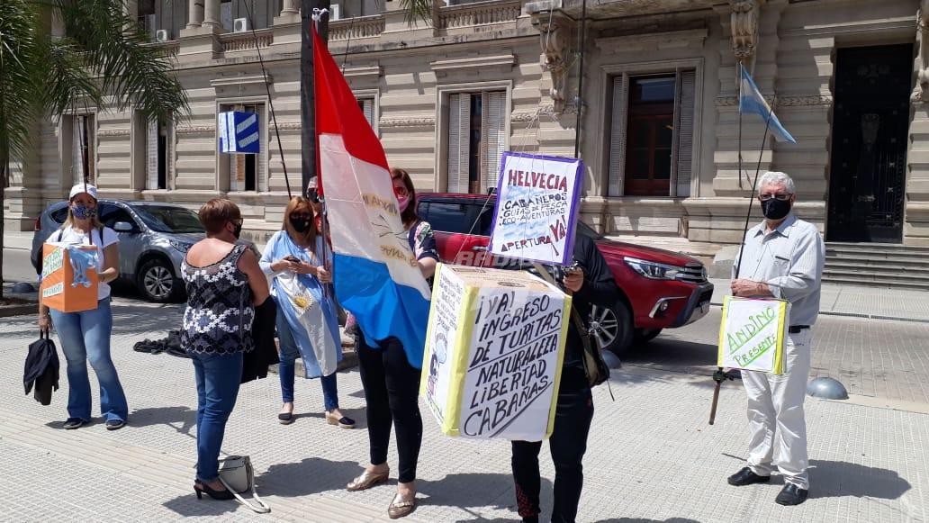 Este miércoles por la mañana, un grupo de cabañeros y prestadores de servicios de turismo en Santa Fe se manifestaron frente a Casa de Gobierno solicitando el retorno de la actividad.