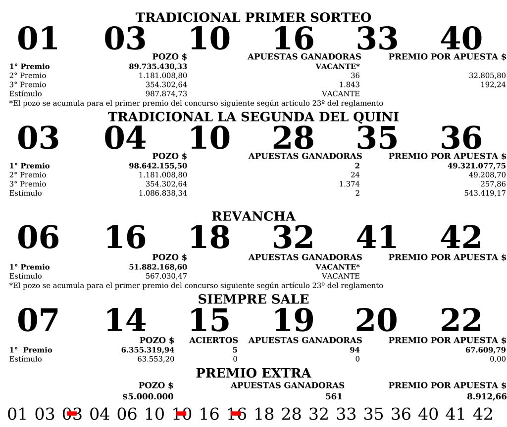 Ambos apostadores acertaron las seis bolillas en la categoría «La Segunda» y cada uno se lleva la suma de $ 49.321.077,75.