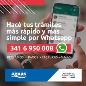 Aguas Santafesinas pone en marcha un sistema de atención de usuarios a través de Whatsapp; un nuevo canal de autoconsulta de fácil acceso, sin costo alguno y que permite efectuar trámites, reclamos o consultas sin necesidad de llamar por teléfono o ingresar a la web.