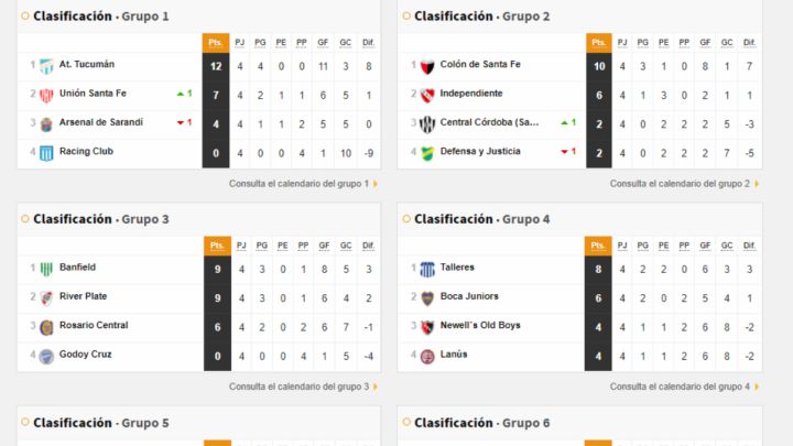 En el grupo C, Banfield y River lideran la zona con 9 y Central se acecha con 6.