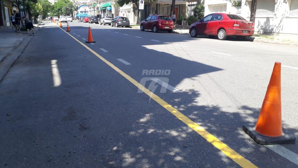 Esta mañana comenzaron los trabajos sobre calle Urquiza con la demarcación de un carril exclusivo para bicicletas, en el tramo entre bulevar Pellegrini y Suipacha.