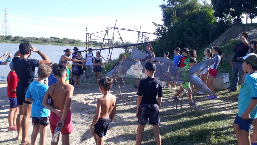 Este viernes el club náutico Azopardo instaló una estructura de hierro con forma de moncholo para que la gente arroje allí los residuos plásticos y se evite así contaminar las aguas.