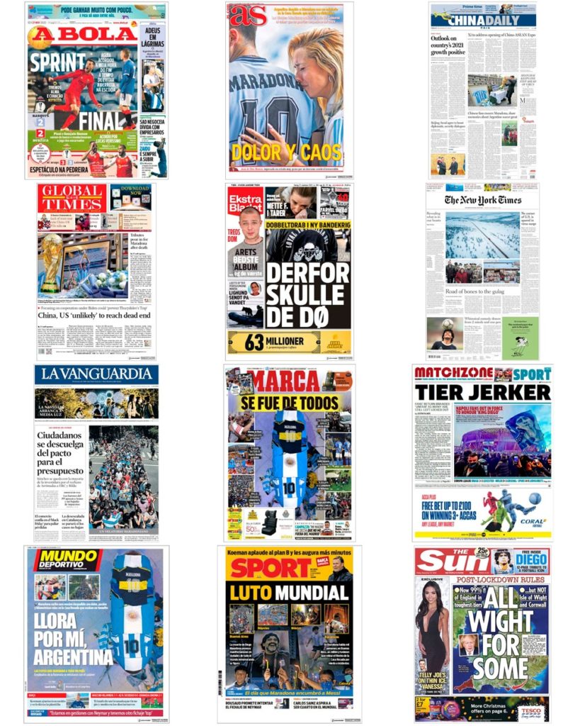«El velorio de Maradona: la prueba del descomunal amor por el ídolo popular», señaló el diario El Comercio, de Ecuador, mientras que colombiano El Tiempo sostuvo que «Con dolor y llanto, el fútbol le dijo ad10s’ a Diego Maradona».