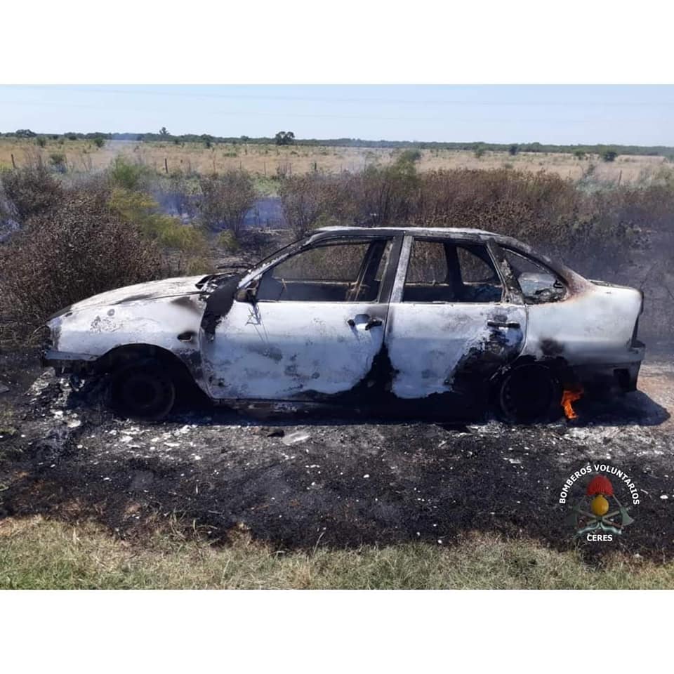 Bomberos Voluntarios Ceres informó que este lunes a la hora 11:00 personal de la guardia rural Los Pumas, informa sobre Incendio vehicular sobre ruta 17 km 12.