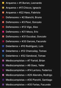 La lista de jugadores presentes