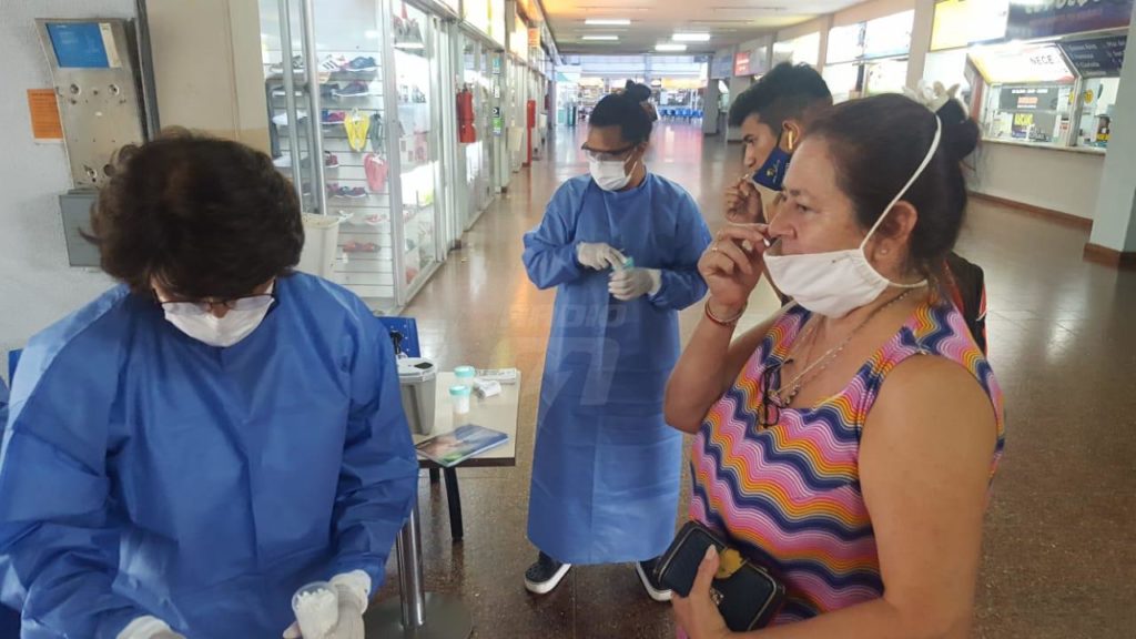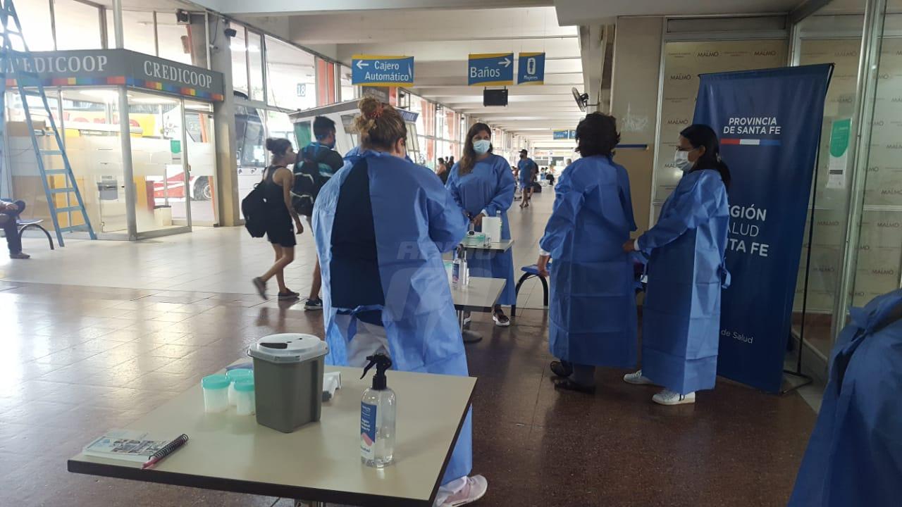 La provincia de Santa Fe realiza controles sanitarios en la Terminal de Ómnibus de la ciudad capital. A través de un puestos de control, los pasajeros son sometidos a test de anosmia en horarios picos de llegadas a la estación.