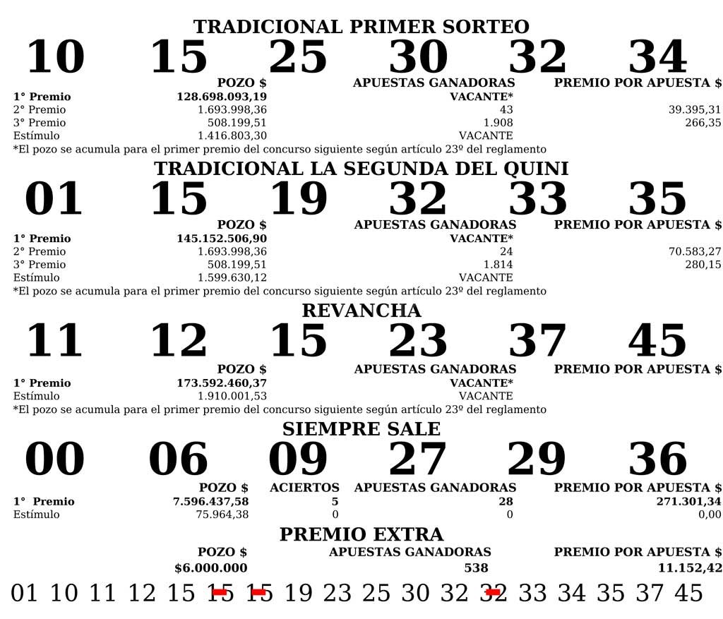 Cabe recordar que el valor de la apuesta Tradicional 1º sorteo y la Segunda: $ 60,00. Con Revancha: $ 85,00. Con Revancha y Siempre Sale: $ 100,0.