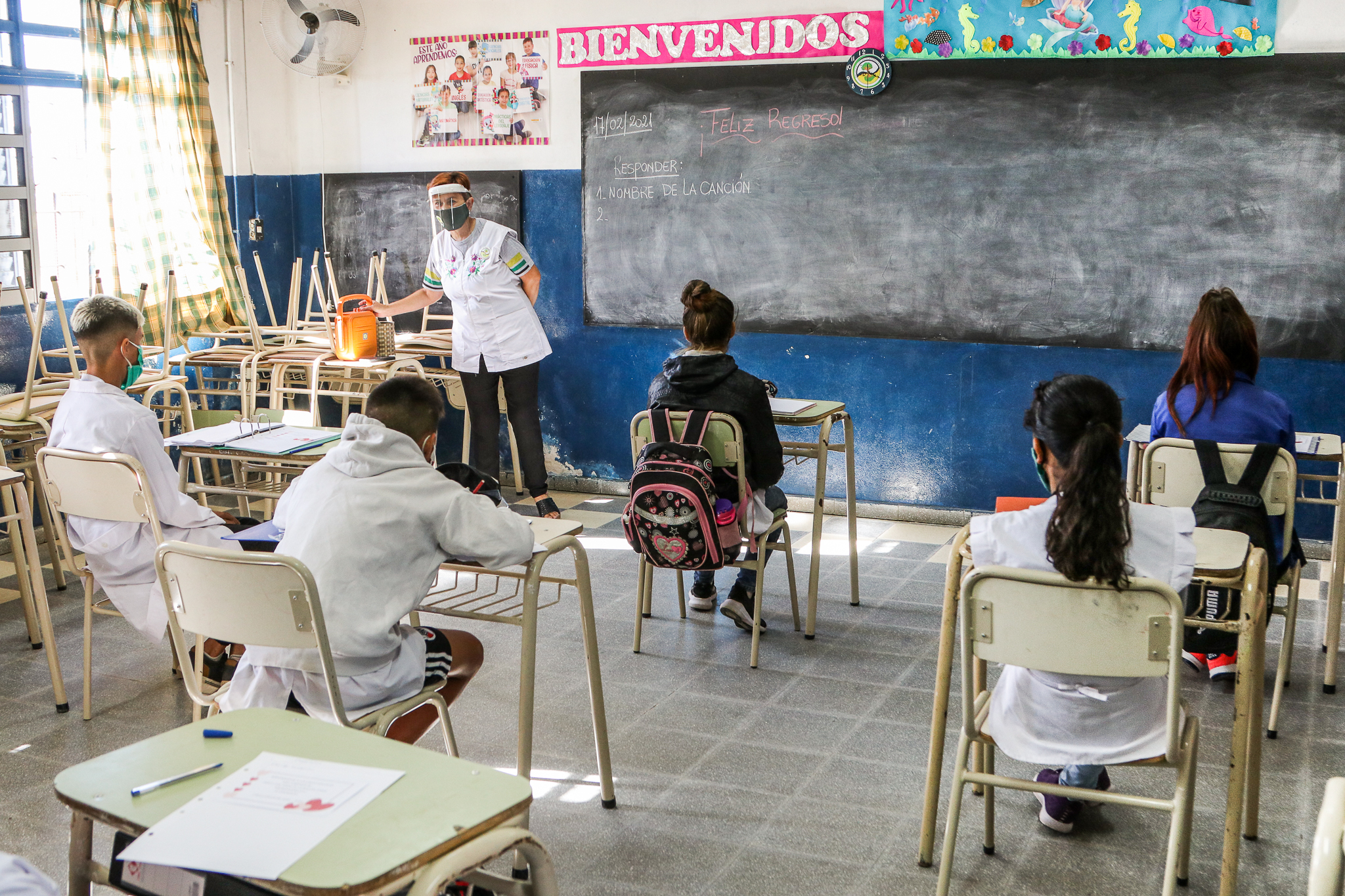 En ese contexto, la directora provincial de Equidad y Derechos del Ministerio de Educación, Vanina Flessia, recorrió diferentes instituciones educativas para conocer los detalles de la vuelta a clases presenciales de las y los alumnos de 7° grado de primaria, 5° año de secundaria y 6° de escuelas técnicas.