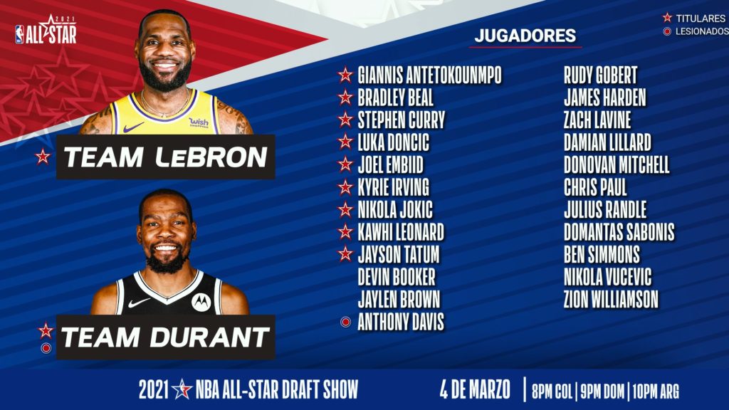 Este domingo se disputa el All-Star Game de la NBA en Atlanta y los capitanes LeBron James y Kevin Durant definieron los equipos. El tradicional evento será en el State Farm de Atlanta Hawks el domingo desde las 22 hora argentina por ESPN.