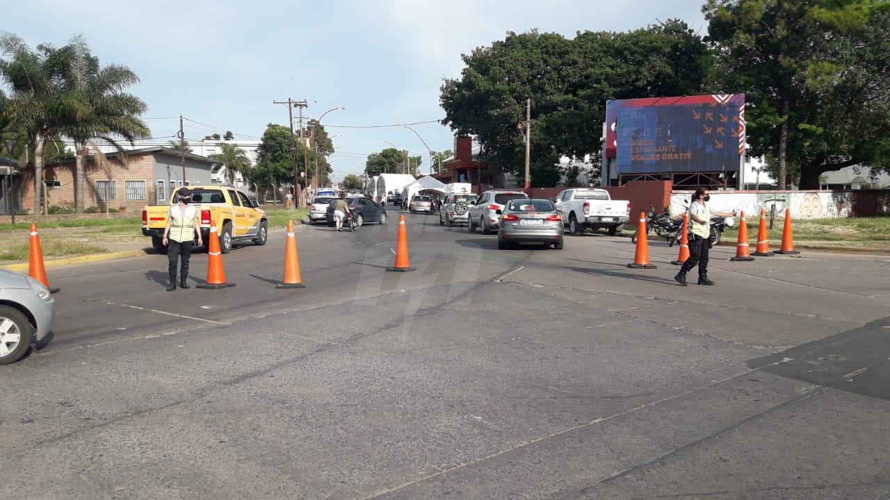La segunda jornada de vacunación contó con un operativo de control de tránsito en las inmediaciones de La Esquina Encendida. Foto: Matías De Phillippis/Radio EME.