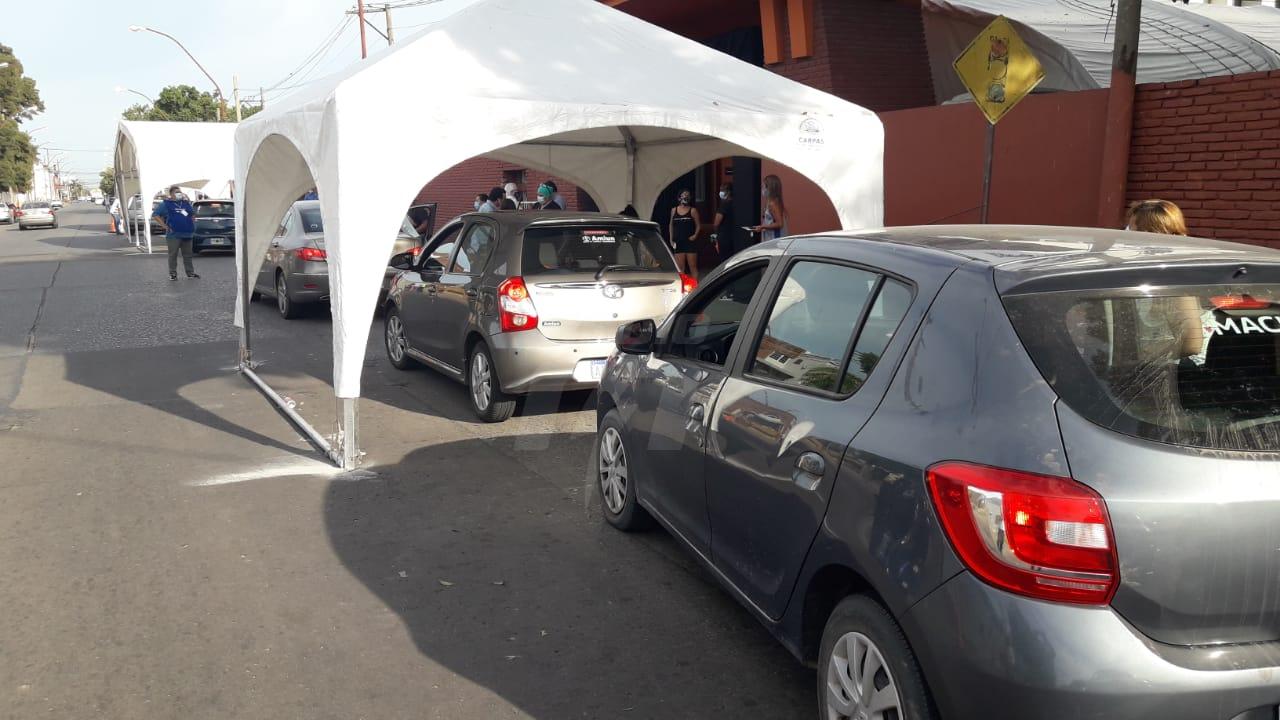 Este martes se incluyeron tres carpas en el exterior del vacunatorio, donde emplearon un sistema móvil para que las personas con movilidad reducida sean inoculizadas. Foto: Matías De Phillippis/Radio EME.