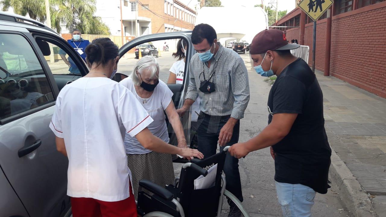 Los adultos mayores con turno confirmado concurrieron al establecimiento para recibir la dosis de la vacuna Covishield de Astrazeneca/Oxford, fabricada en India. Desde las 9 inició el plan de inmunización, y se extenderá hasta las 17, al igual que ayer.
