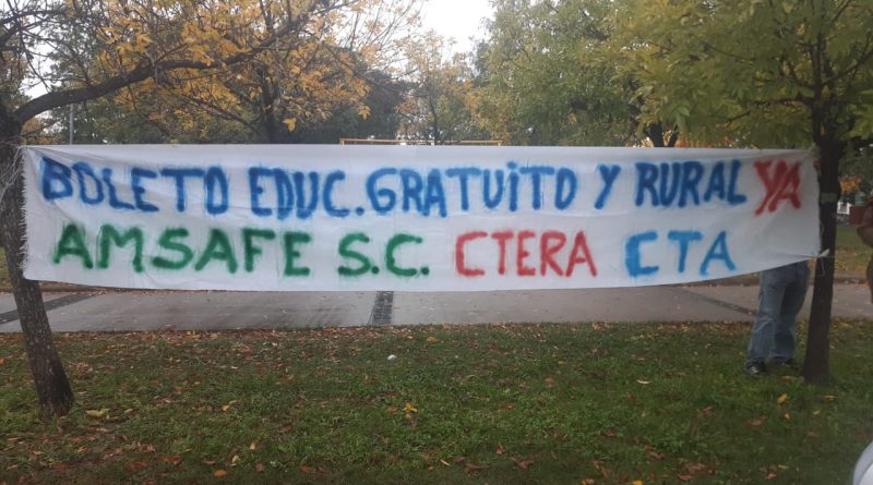 Así lo comunicó Mari Ramos de Amsafe Departamento San Cristóbal “Hoy en la ciudad de San Cristóbal, se están firmando convenios para el BOLETO EDUCATIVO RURAL, y allí estuvimos, respetando protocolos, pero visibilizando nuestro reclamo”