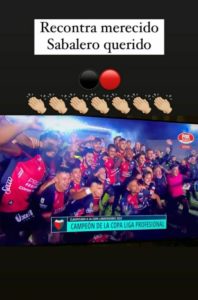 Los delanteros, el primero de Tostado y el segundo de Villa Minetti, manifestaron a través de sus redes sociales la alegría de ver al rojinegro levantar la Copa de la Liga.