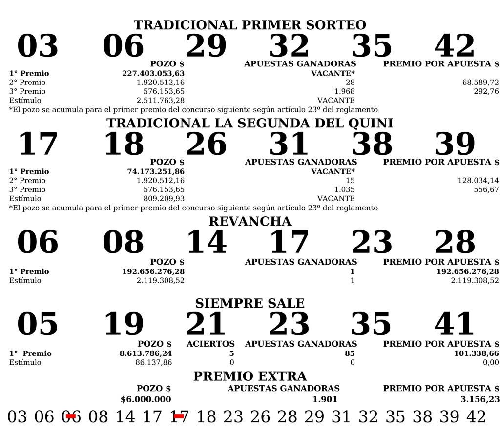 Este domingo por la noche se desarrolló el concurso n° 2866 de Quini 6 y hubo un ganador con seis aciertos. El apostador se quedó con la categoría «Revancha» y se llevó una suma de $ 192.656.276,28.