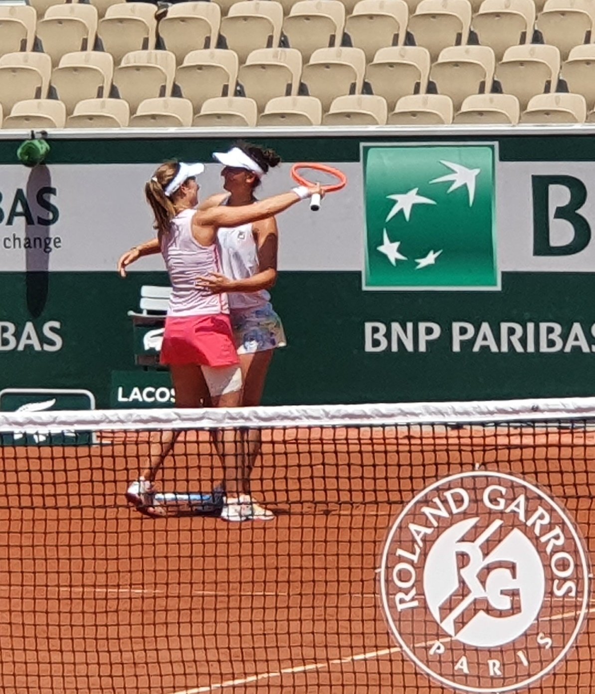 Hoy Nadia Podoroska en dupla con la rumana Irina-Camelia Begu se impusieron a la croata Petra Martic y la estadounidense Shelby Rogers en 3 sets con parciales 6-3, 4-6 y 6-2 en casi 2 horas de partido por los cuartos de final del certamen francés.