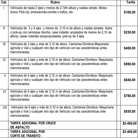 La actualización va en consonancia con las dispuestas según Resoluciones 942, 943 y 944/21 de la Dirección Nacional de Vialidad en todos los Corredores Viales de Jurisdicción Nacional.