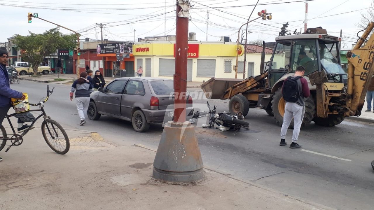 Según el móvil de Radio EME, el siniestro vial ocurrió a la altura del semáforo, donde el un choche fue impactado en su parte trasera por un birrodado. En consecuencia, el conductor de la moto quedó tendido en plena calle.