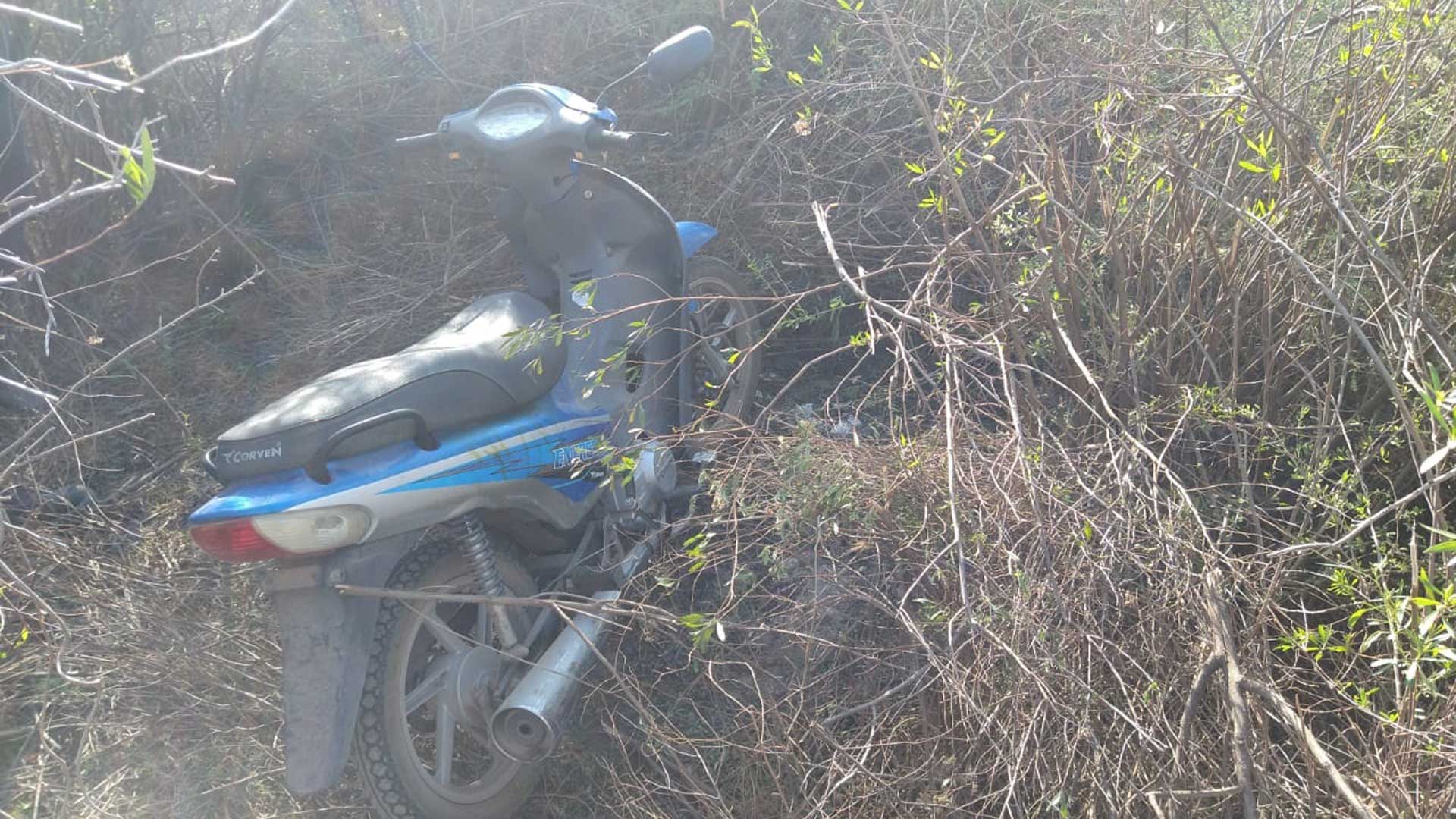 Pasadas las tres de la tarde de este viernes, agentes policiales que se encontraban de recorrida habitual por zona rural de este medio, por el camino vecinal conocido como «los portones blancos”, encontraron una motocicleta escondida entre los pastizales.