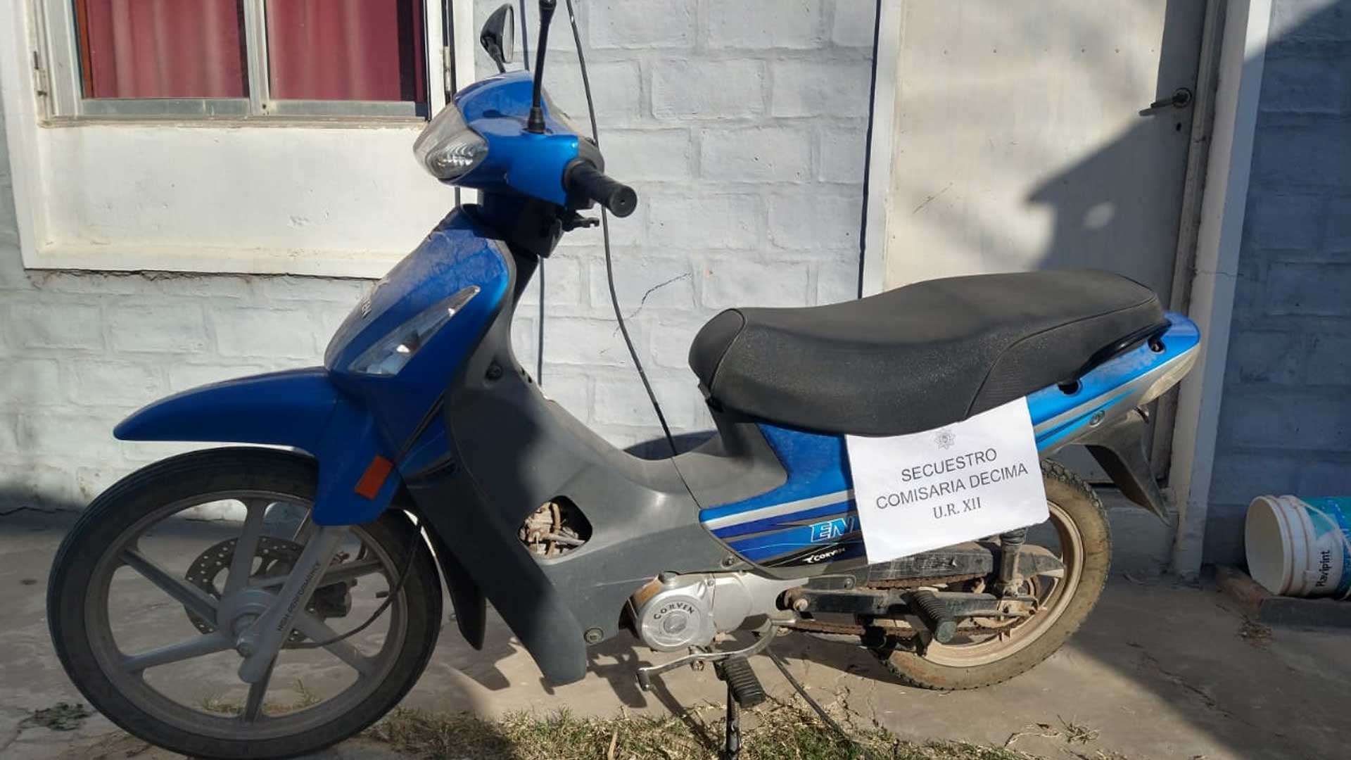 Procedieron al secuestro del rodado, una moto marca Corven de 110 cilindradas, de color azul con detalles grises, sin chapa patente visible.
