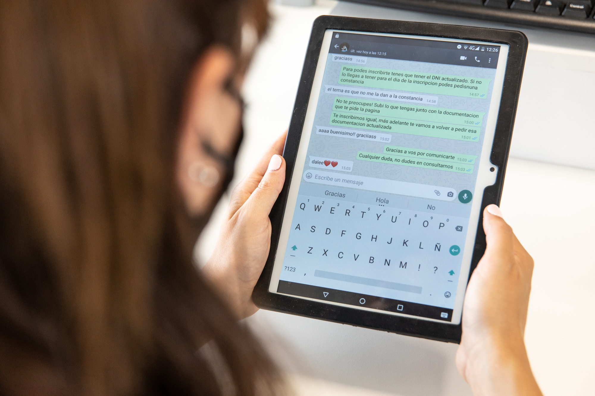 Otra de las posibilidades que ofrece www.unl.edu.ar/expocarreras es la de suscribirte a canales de Whatsapp para vivir la experiencia en tiempo real y en la palma de la mano. Hay disponible un canal por cada facultad, instituto, centro universitario para elegir el que más interese y recibir durante toda la semana información sobre la agenda, la propuesta académica, la vida universitaria, becas, fechas de ingreso entre otros datos de interés en dispositivos móviles. También se puede chatear con estudiantes de la FUL-UNL, de vincularse con el área de Bienestar y, en caso de ser una persona en situación de discapacidad, chatear o iniciar una videollamada con Inclusión UNL.