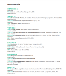 La programación comenzará este miércoles 22 de septiembre y cerrará el lunes 27.