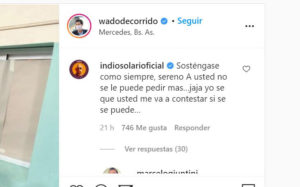 Por su parte, De Pedro agradeció las palabras del popular compositor: “Siempre tranquilo, Indio Solari, siempre aprendiendo. Escuchando con humildad. Gracias por tus palabras y por tu amistad”, respondió.