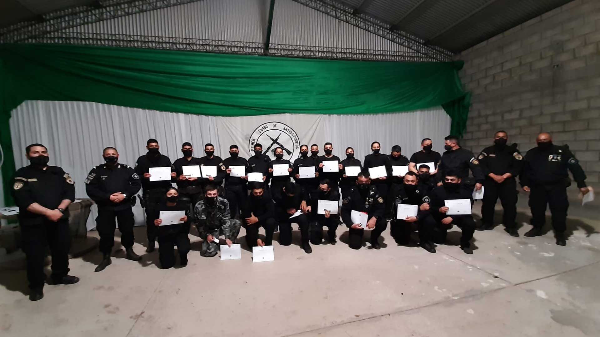 A los capacitados se les entregaron las distinciones correspondientes, parches y pines metálicos conmemorativos del Primer Curso Antidisturbios de la UR XII, y diplomas que avalan la participación y aprobación del mismo”.