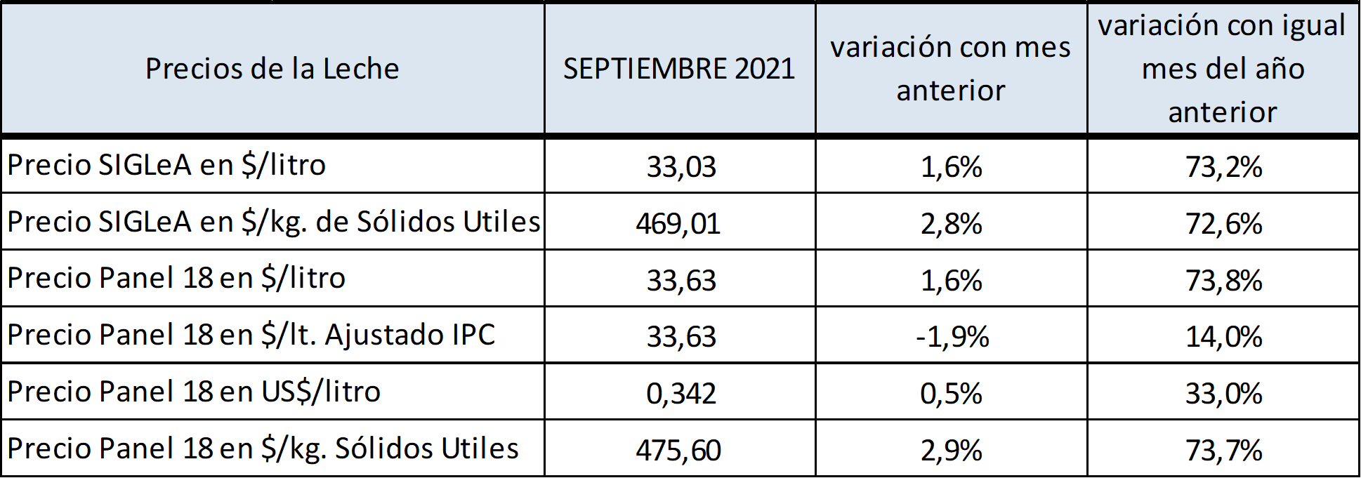 El Observatorio de la Cadena Láctea Argentina publicó hoy el precio promedio pagado al productor de leche durante septiembre, elaborado a partir de los registros en el Sistema Integrado de Gestión de la Lechería Argentina (Siglea).