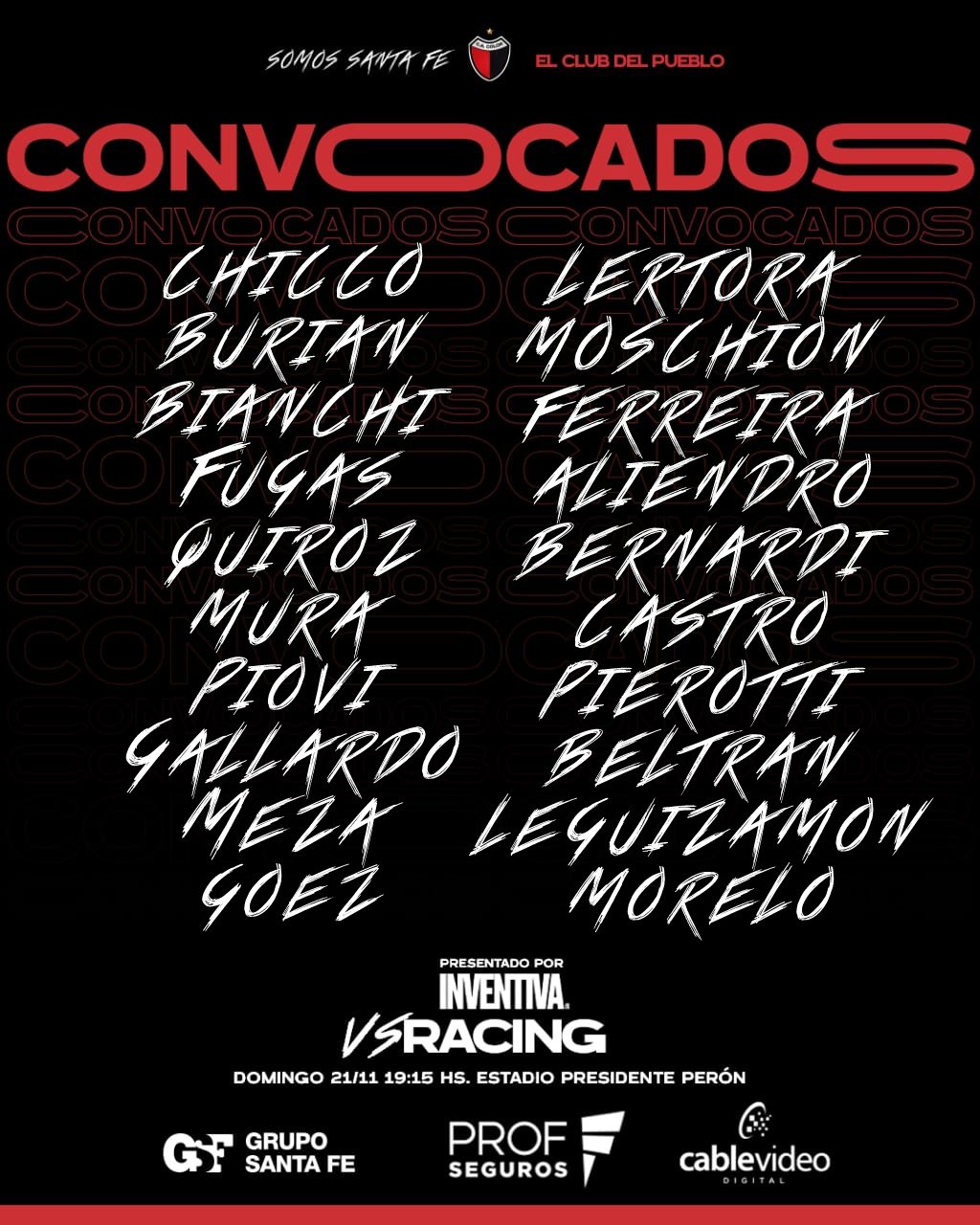 De esta manera, Nahuel Gallardo, Alexis Castro y Cristian Ferreira ingresarán en lugar de Facundo Garcés, Rafael Delgado y Facundo Farías teniendo en cuenta la formación inicial la fecha anterior en la victoria 3 a 0 ante Platense. Además, entre los 20 convocados figuran los defensores juveniles de la reserva Elías Fugas y Leandro Quiroz.