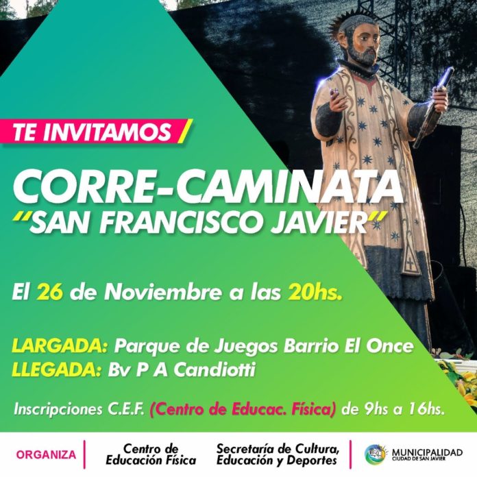 La Secretaría de Cultura, Educación y Deportes de la Municipalidad de San Javier, en conjunto con el Santuario «San Francisco Javier» y el Centro de Educación Física N° 43, invitan a la realización de una corre-caminata, en el marco de las fiestas patronales locales.