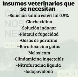 Desde Supermercado Giro Ceres y Colonia Alpina comenzamos una colecta de insumos que se necesitan para poder atenderlos. ¡Sumate! Nosotros iniciamos esto movidos por el dolor que genera ver a nuestra fauna en peligro, pero la diferencia la hacemos entre todos. En la lista aparecen los insumos que necesitan, los conseguís en la farmacia. También necesitan agua, podés acercar una botella/bidón, lo que esté a tu alcance. Fardos, rollos, maíz entre otros alimentos también serán de utilidad para ellos. Acercate a cualquiera de los dos locales o contactate al 3491 584802/445154