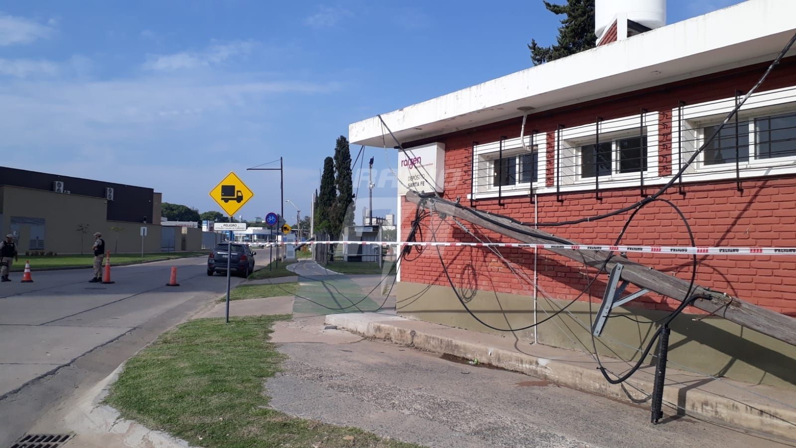 Este jueves, un camión de origen brasilero salía del Puerto de Santa Fe y, cuando hacía la rotonda para ir por calle Sarmiento, arrastró todo un tendido de cables y tumbó seis postes. La mayoría de los cables son de telefonía.